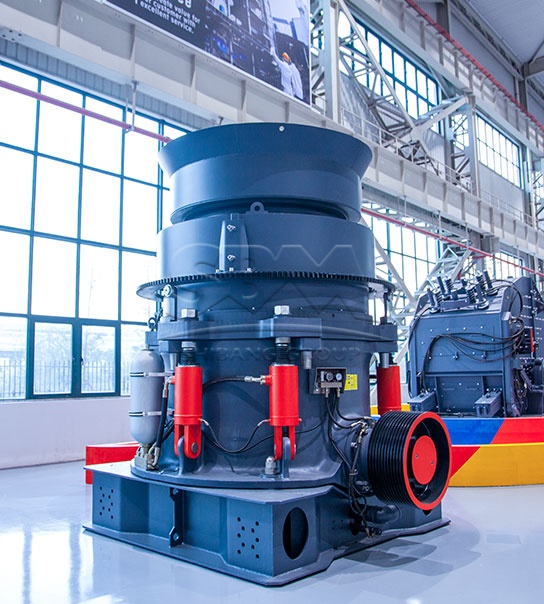 Based on some design principles of traditional multi-cylinder hydraulic cone crushers like fixed main shaft, eccentric sleeve rotating around main shaft and lamination crushing, HPT Multi-cylinder Hydraulic Cone Crusher makes a breakthrough on its structure.